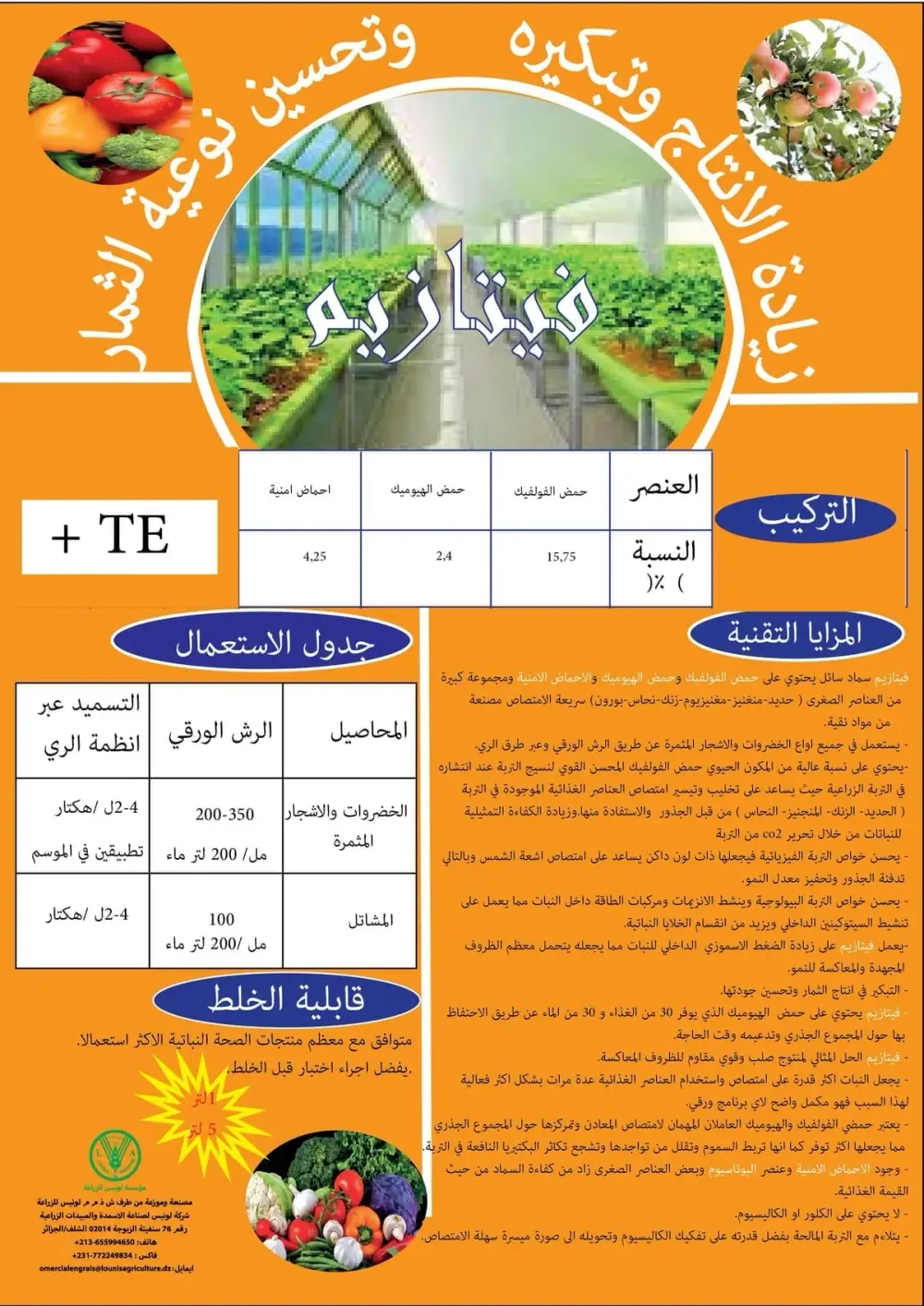 زيادة الإنتاج: يسرع من إنتاج الثمار ويحسن جودتها ليكون مكملا مثاليا لبرامج التسميد.