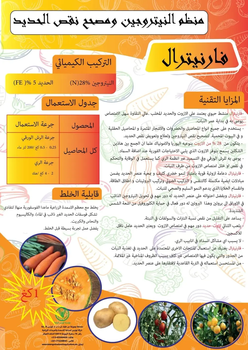 فارنيترال منشط حيوي يعتمد على الآزوت والحديد المخلب عالي النقاوة وسهل الامتصاص مصمم لتصحيح نقص النيتروجين والحديد بفعالية.