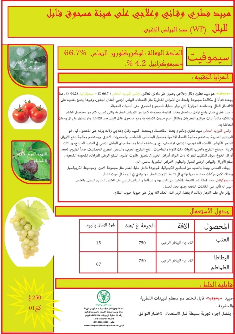 | المادة الفعالة | أوكسي كلوريد النحاس + سيموكسانيل |