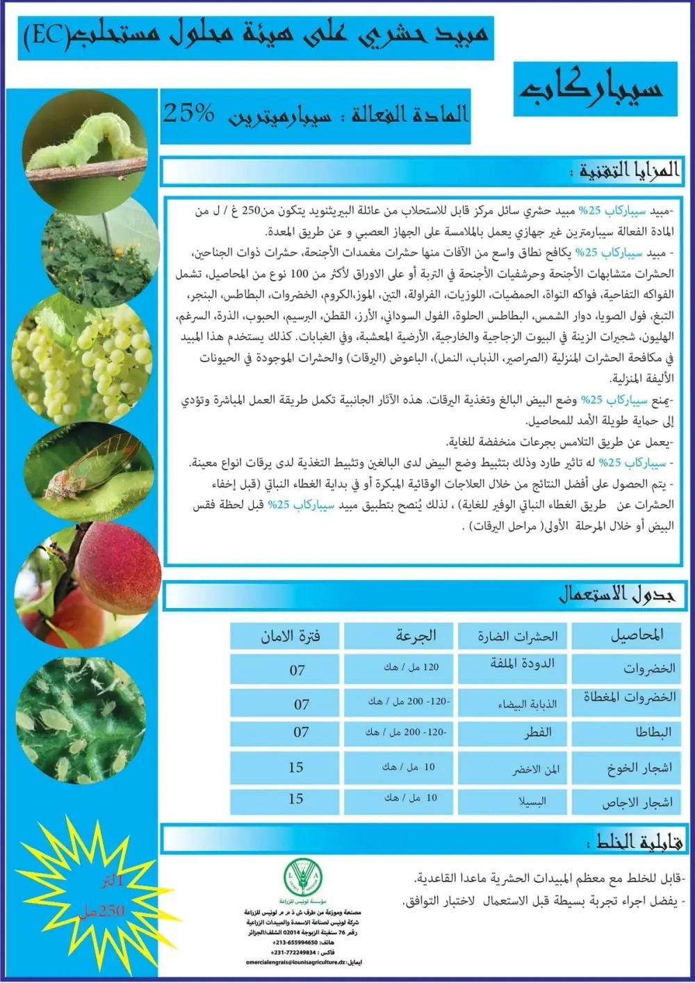 | المادة الفعالة | سيبارميترين |